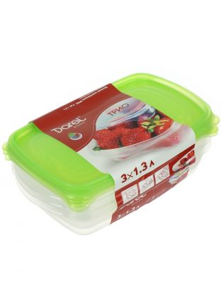 Набор емкостей пластик, 1.3 л, 3 шт, в ассортименте, прямоугольный, для продуктов, Darel, Трио, 40402