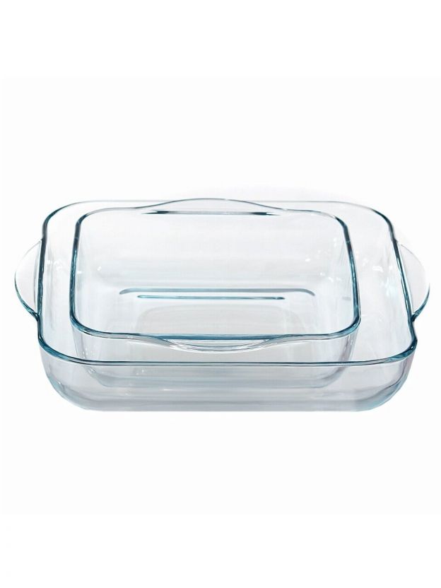 Набор форм Borcam из жаропрочного стекла: две квадратные формы 22х22 и 28x28 см для духовки и СВЧ — идеальный выбор для запекания дома и на даче.