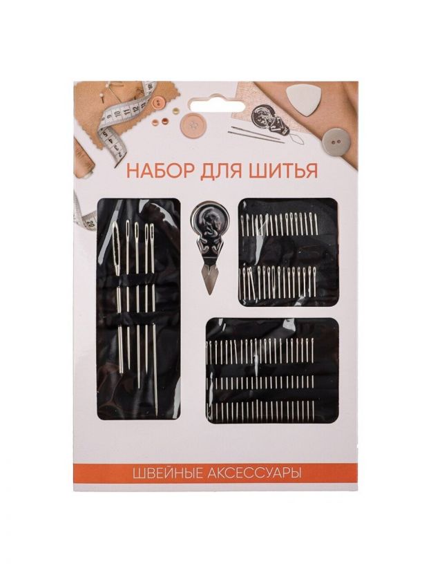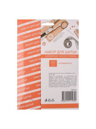 Набор игл 60 предметов, для шитья, нитевдеватель, сталь, 308-125