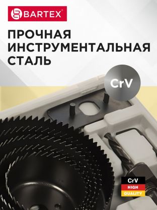 Работать с набором Bartex невероятно легко. Благодаря переходнику Вы сможете быстро заменить коронки. Их прочные и крепкие зубья обеспечивают максимально качественное выполнение работ. Компактный кейс позволит Вам удобно хранить набор инструментов и, при необходимости, взять его с собой.