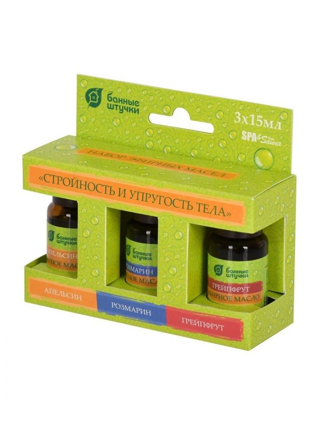 Набор эфирных масел Банные штучки, Стройность и упругость тела, 3 шт, 15 мл, (апельсин+грейпфрут+розмарин), 30001