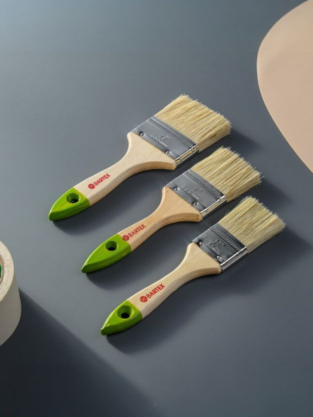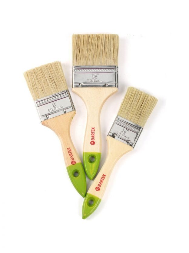 Набор кистей Bartex, Стандарт, 3 шт, 38, 50, 63 мм, натуральная щетина, рукоятка дерево