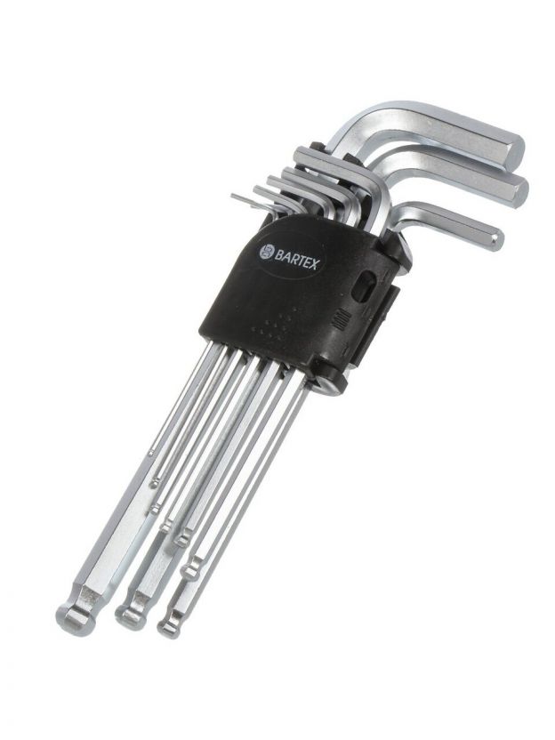 Набор имбусовых ключей Bartex обязательно пригодится Вам в домашнем наборе инструментов. Удобные, крепкие и надежные ключи разных размеров помогут Вам без труда справиться с различными монтажными работами. Благодаря наконечнику с шариком Вы сможете совершать рабочие операции даже в самых труднодоступных местах.