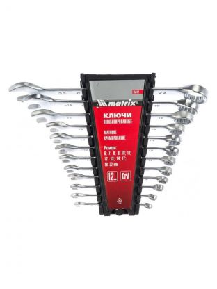 Набор ключей комбинированных Matrix пригодится при проведении ремонтных работ дома или в гараже. С помощью инструментов можно осуществлять быстрый монтаж и демонтаж крепежных элементов. Кольцевой зев обеспечивает удобство работы благодаря углу наклона 15 градусов относительно плоскости ключа.