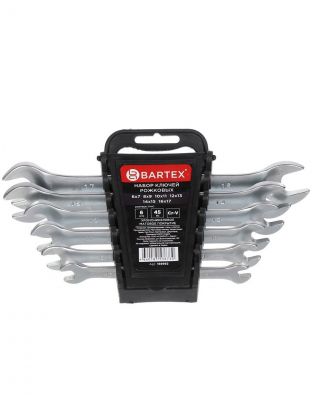 Набор ключей рожковый, М60, 6 предметов, Bartex, 6-17 мм, матовый, CrV сталь, держатель