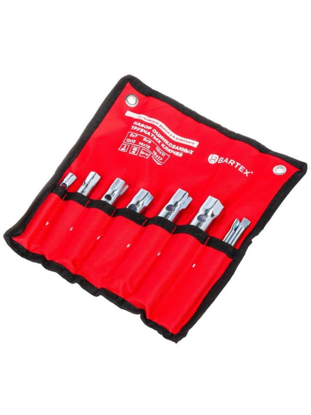 Набор ключей трубчатый, 6 предметов, Bartex, 6-17 мм, оцинкованный, CrV сталь, + 2 съемных рычага, сумка