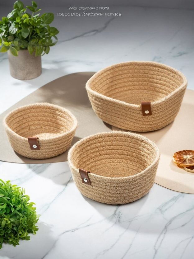 Эти плетеные корзины созданы для тех, кто ценит порядок и эстетику. Бежевый цвет корзин гармонично впишется в любой интерьер, добавляя ему нотку уюта и элегантности. Несмотря на отсутствие крышек, корзины сохраняют аккуратный вид и обеспечивают легкий доступ к содержимому. Их круглая форма и отсутствие ручек делают их идеальными для размещения в любом уголке вашего дома.