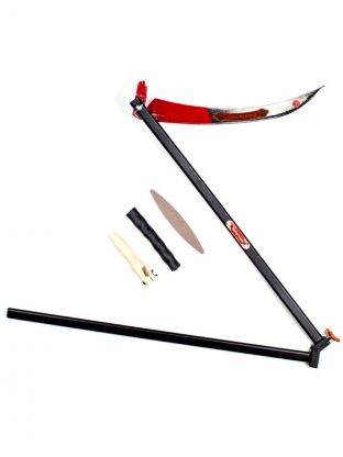 - Комфортная работа — в набор входит подвижная деревянная рукоятка для установки на косовище, облегчающая удержание косы.
