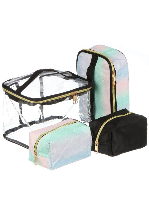 - Комплект из 4 косметичек: удобно сортировать косметику, аксессуары и мелочи для путешествий или хранения.