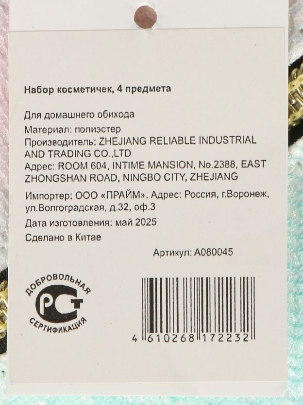 Все 4 косметички выполнены из прочного полиэстера — это современный материал, устойчивый к влаге и износу, легко очищается, подходит для ежедневного использования.