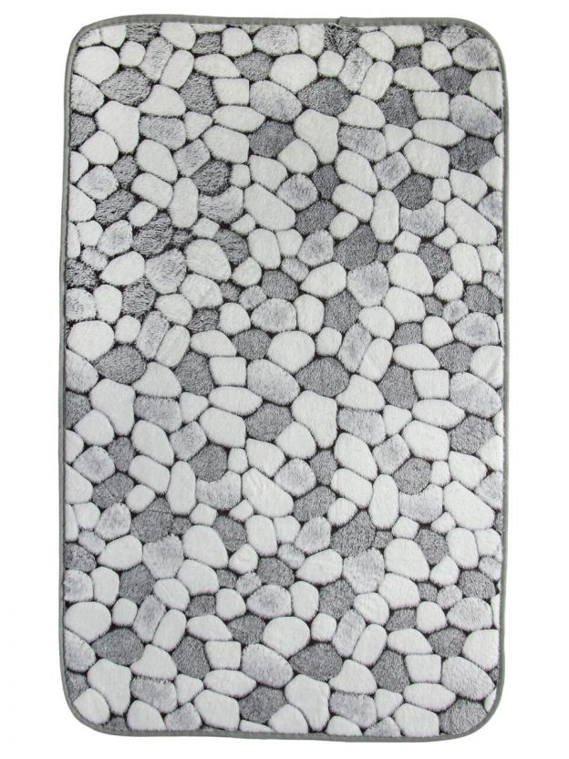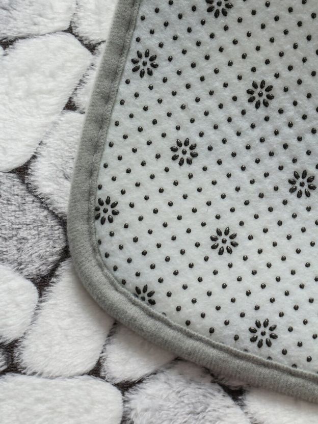Набор ковриков для ванной комнаты с узором под серую гальку — это не только эстетика, но и функциональность. Благодаря влаговпитывающему и быстросохнущему материалу, коврики быстро избавляют пол от влаги и предотвращают образование луж. Если вы ищете, какой коврик выбрать для ванной, чтобы он не скользил и не требовал сложного ухода, обратите внимание на эту модель: полиэстер приятен на ощупь, не вызывает аллергию и прост в уходе.