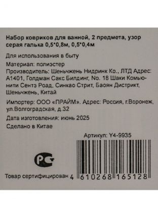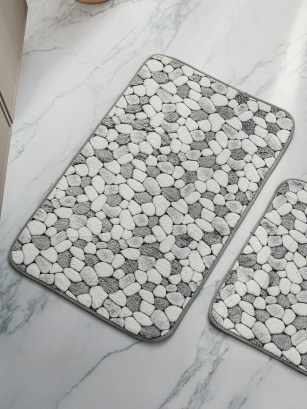Набор ковриков для ванной 2 шт. «Серая галька» Y4-9935 — стильное решение для уюта и сухости в ванной комнате. Влаговпитывающие, быстро сохнут, подходят для дома и дачи.
