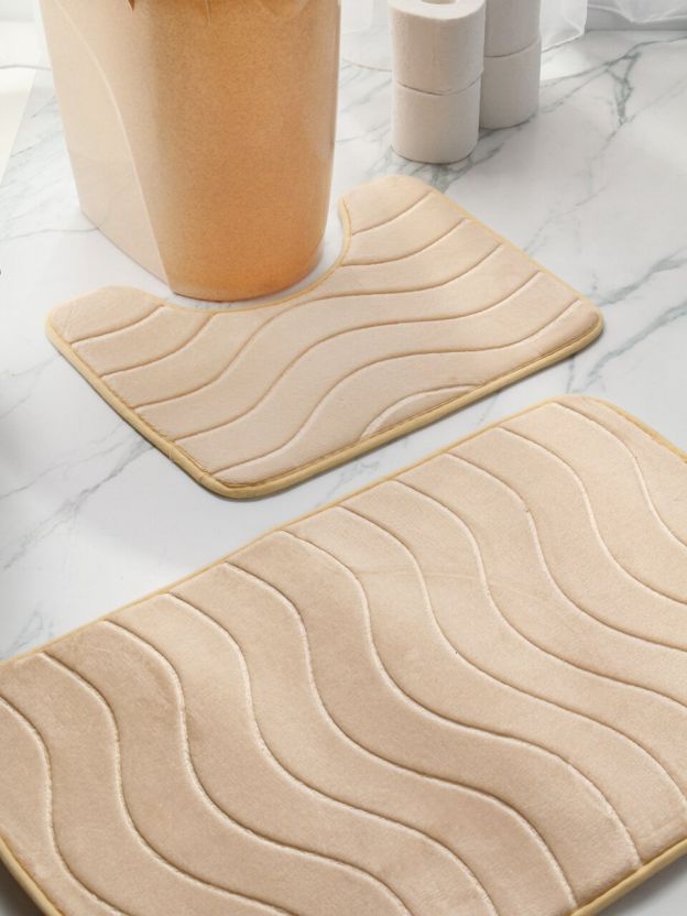 Набор ковриков для ванной, 2 шт, велюр, с тиснением, бежевый, Y4-9967