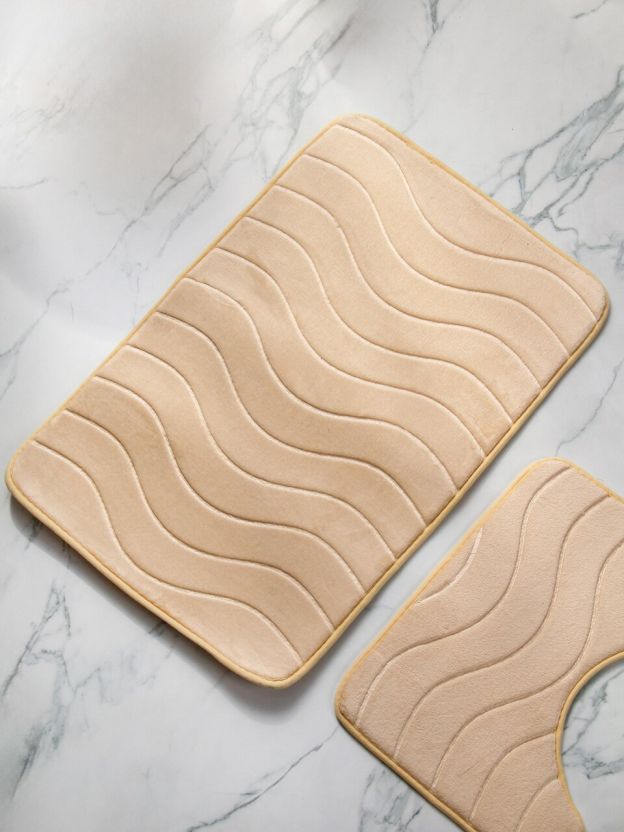 Набор велюровых ковриков для ванной 2 шт. (беж Y4-9967): мягкость, стиль и защита пола — идеальное решение для уюта в доме и на даче.