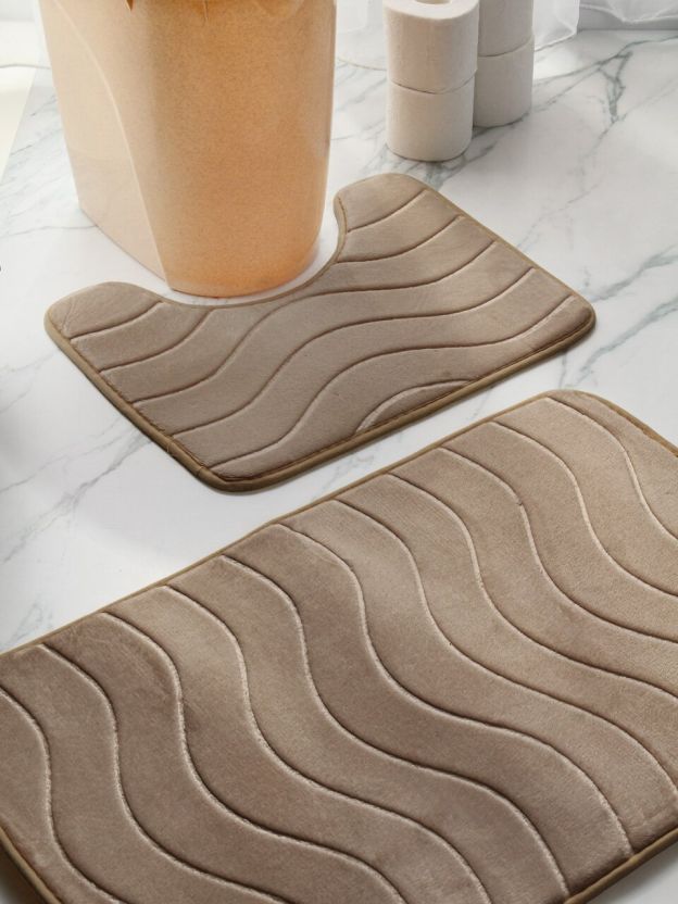 Набор ковриков для ванной 2 пр. велюровый с тиснением, коричневый — комфорт и уют в ванной за 1 минуту. Размеры 50х80 и 40х50 см. Купите недорого для дома или дачи.