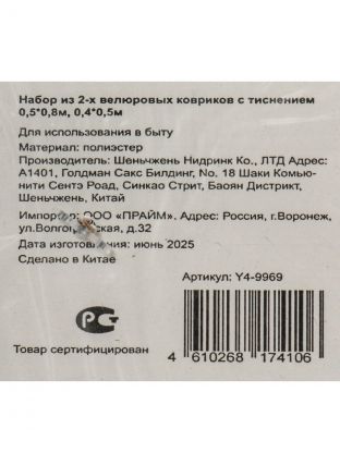 • Практичные размеры: комплект ковриков 50х80 см и 40х50 см из мягкого велюра и полиэстера, долговечен и прост в уходе.