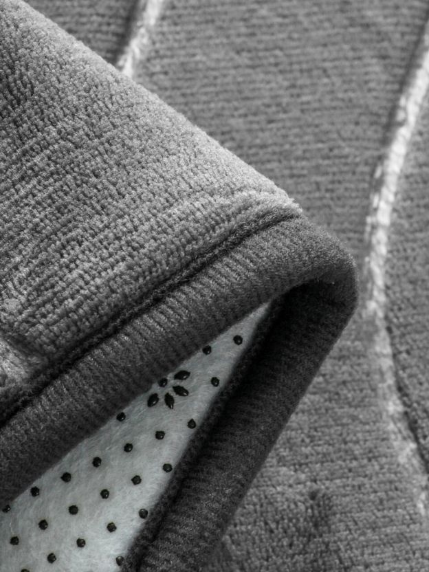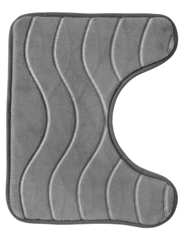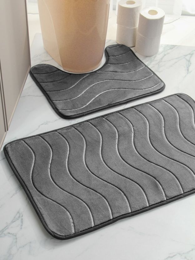 Комплект ковриков для ванной из велюра с тиснением: 2 размера, стильный серый цвет, быстро сохнут, защищают от влаги и холода, подходят для любого интерьера.