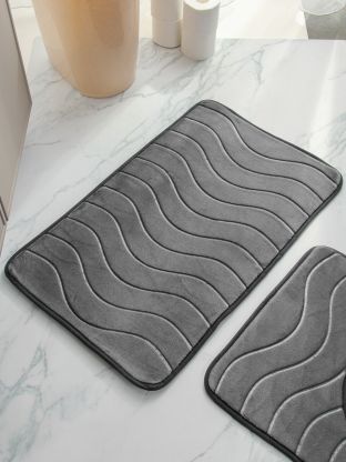 В наборе два коврика: 50х80 см и 40х50 см, оба прямоугольной формы, серого цвета, с тиснением.