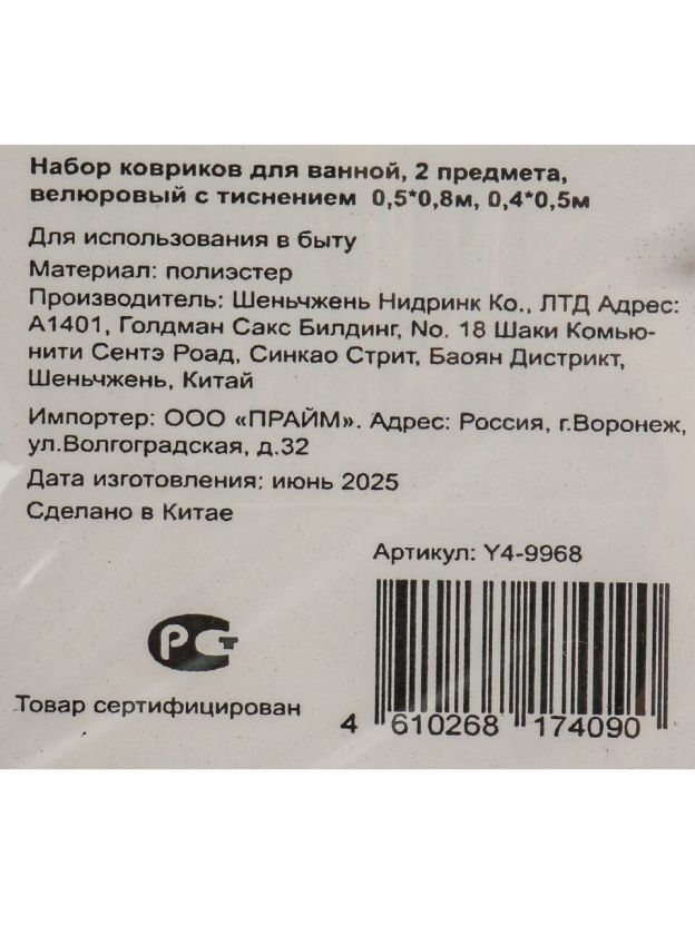 Набор ковриков для ванной, 2 пр, велюровый с тиснением, серый Y4-9968 — это оптимальный выбор для тех, кто ищет недорогие коврики для ванной комнаты с современным дизайном и максимальной практичностью. Благодаря велюровой поверхности коврики быстро впитывают влагу, не оставляя следов на полу, а приятная на ощупь текстура делает каждое утро комфортнее. Комплект состоит из двух ковриков разных размеров: большой (50х80 см) идеально подойдет для выхода из душа или ванны, а компактный (40х50 см) — для туалетной зоны или небольших пространств.