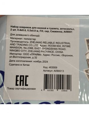 - Количество ковриков: 2 шт.