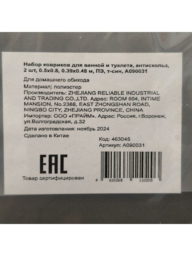 Коврики выполнены из высококачественного материала, который обеспечивает отличную впитываемость влаги и быстро сохнет. Благодаря этому, вы можете быть уверены, что ваши ноги всегда будут сухими и теплыми.