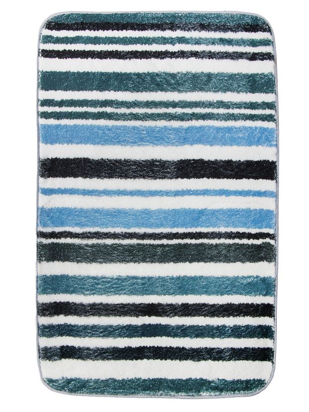 В наборе два коврика: 50х80 см и 40х50 см. Оба изготовлены из микрофибры и полиэстера, имеют прямоугольную форму и полосатый рисунок.