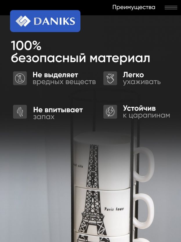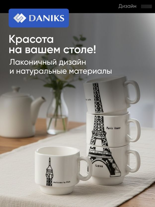 • Уникальный дизайн: каждая кружка украшена узнаваемым мотивом Эйфелевой башни, что делает набор эффектным подарком и украшением интерьера.