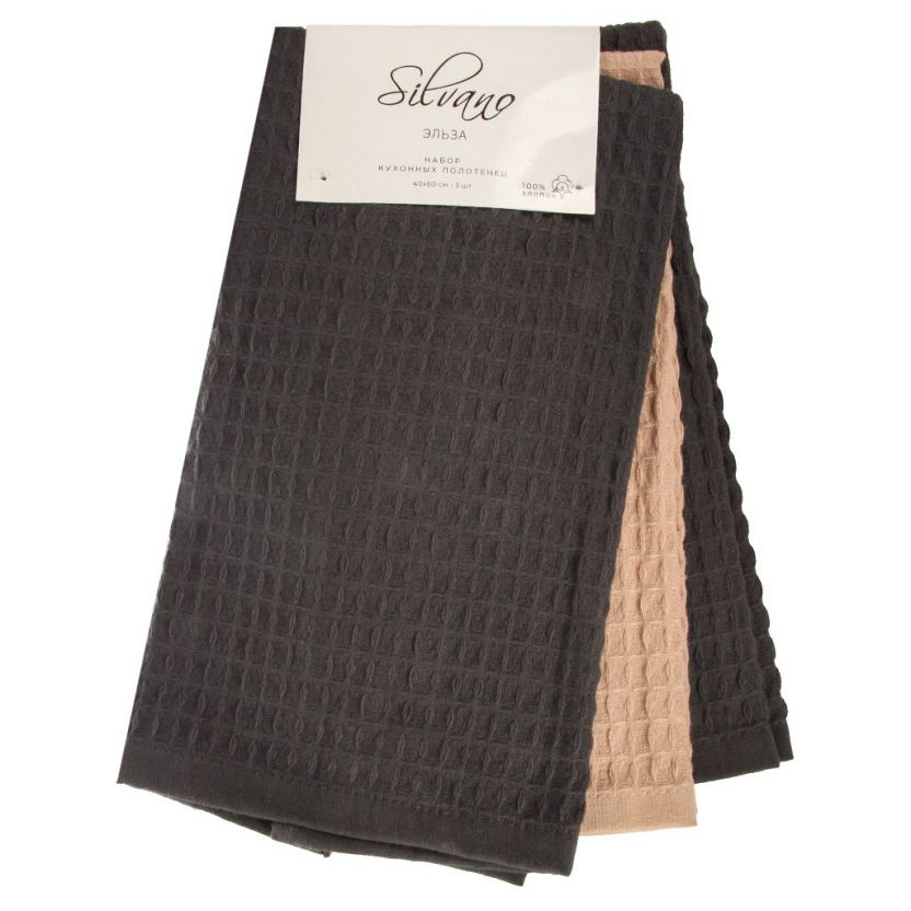 Набор кухонных полотенец 3 шт, 40х60 см, вафельный, 100% хлопок, 270 г/м2, Silvano, Эльза, бежевый, серый, Узбекистан