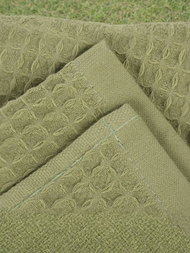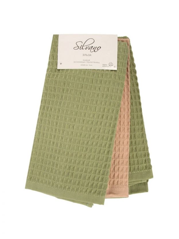 Набор кухонных полотенец 3 шт, 40х60 см, вафельный, 100% хлопок, 270 г/м2, Silvano, Эльза, бежевый, зеленый, Узбекистан