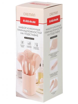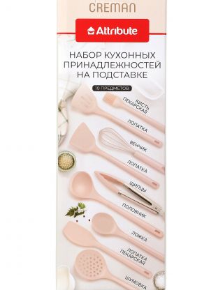 Набор кухонных принадлежностей 10 предметов, полиамид, на подставке, навеска, Attribute, Creman, AGC222