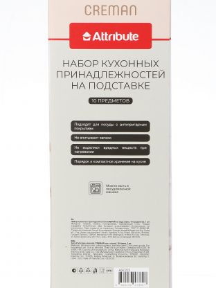 Ищете, какой набор кухонных принадлежностей выбрать для ежедневного использования? Attribute Creman AGC222 — это оптимальное решение для дома, дачи или подарка. В комплекте 10 предметов: лопатки, ложки, половник и венчик, которые подходят для любых типов посуды, включая тефлон и керамику. Прочный полиамид не впитывает запахи и легко моется — даже в посудомоечной машине.