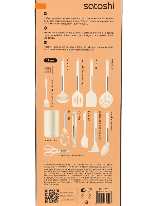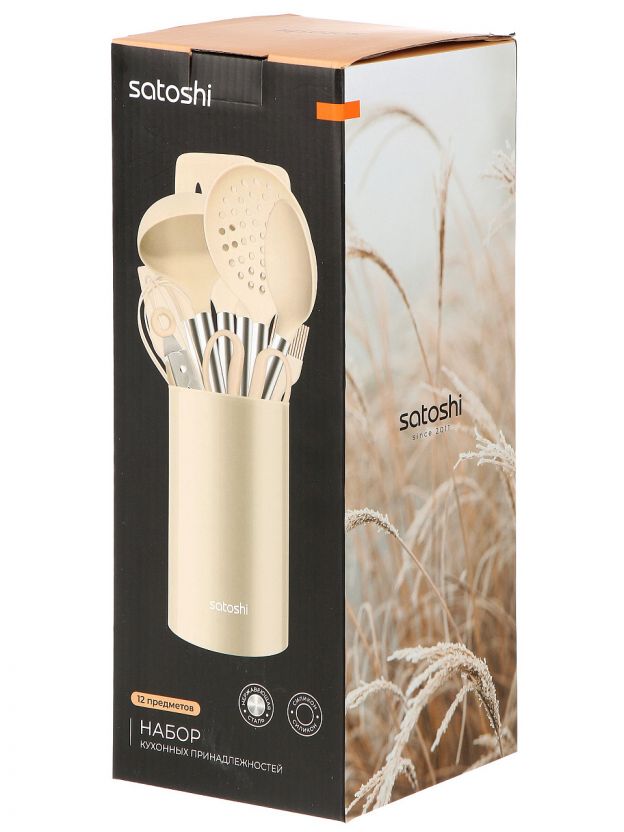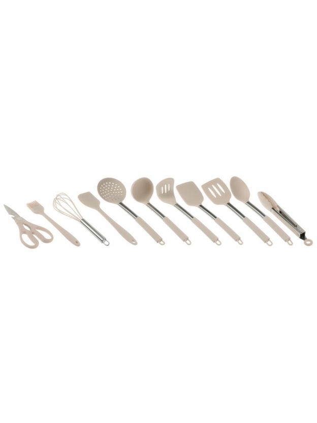 Универсальный набор кухонных принадлежностей Satoshi Тулон 12 пр: силикон и сталь для антипригарной посуды, стильный беж — решение для кухни и дачи