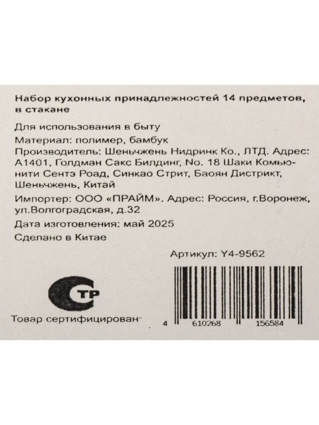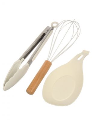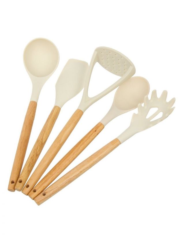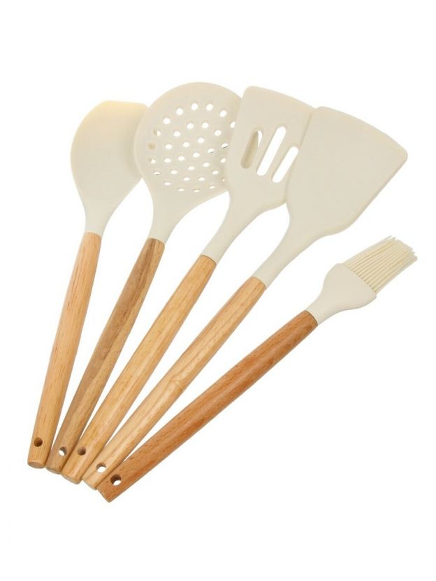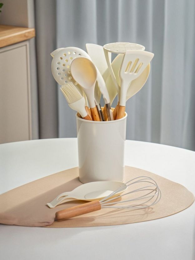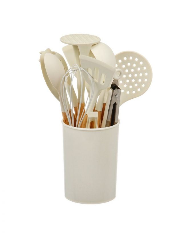 Набор кухонных принадлежностей 14 предметов, силикон, бамбук, в стакане, белый, Daniks, Y4-9562