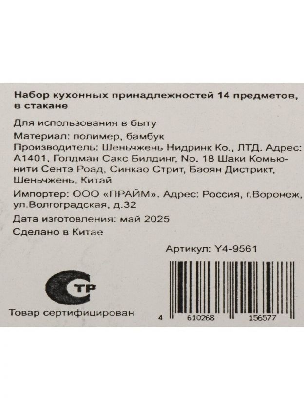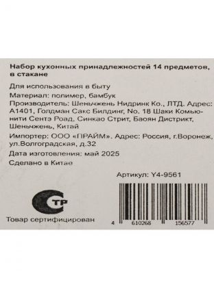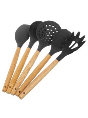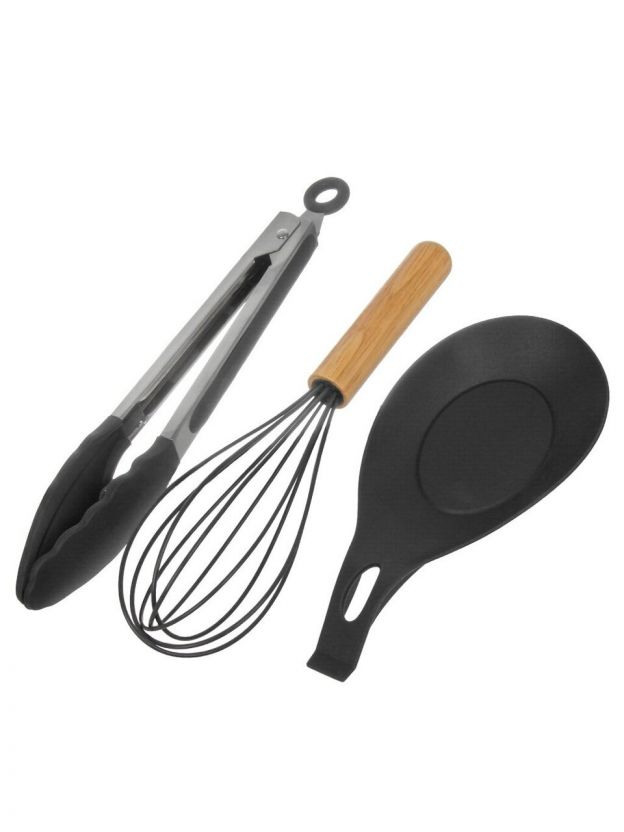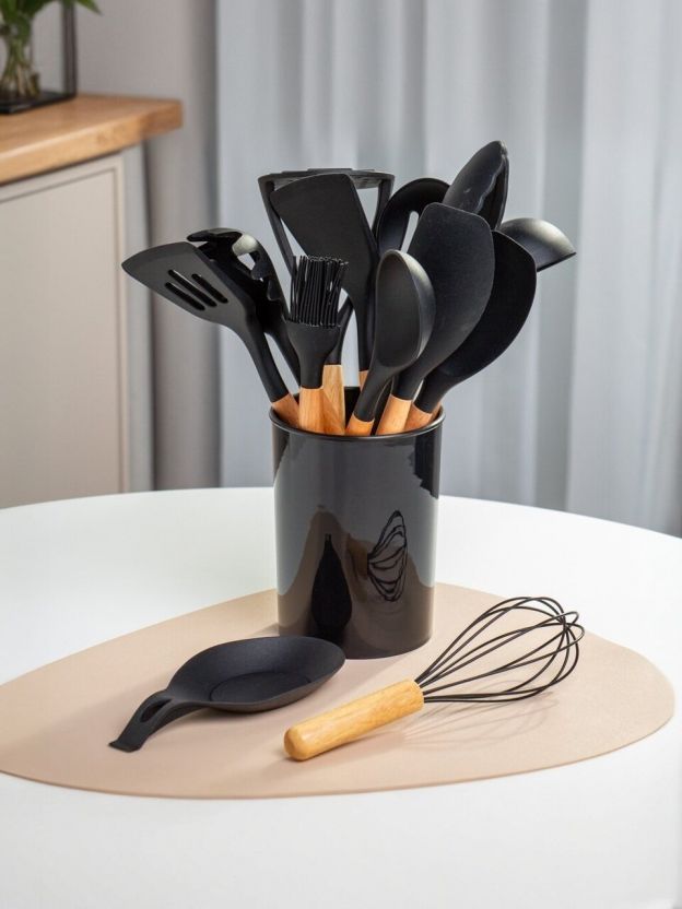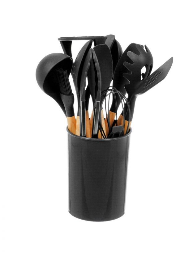Набор кухонных принадлежностей 14 предметов, силикон, бамбук, в стакане, черный, Daniks, Y4-9561