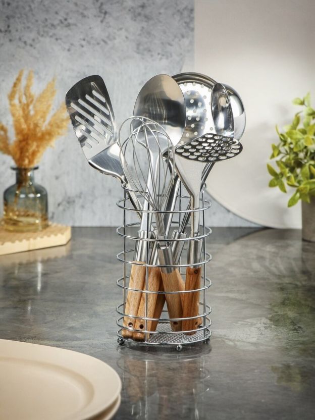 Каждый предмет в наборе тщательно продуман для максимального удобства и эффективности. Венчик поможет быстро взбить ингредиенты, половник станет идеальным для сервировки супов и соусов, а шумовка пригодится для удаления излишков жидкости. Ложка и картофелемялка облегчат процесс приготовления пюре и других блюд, а лопатка станет незаменимой при обжаривании и переворачивании продуктов.