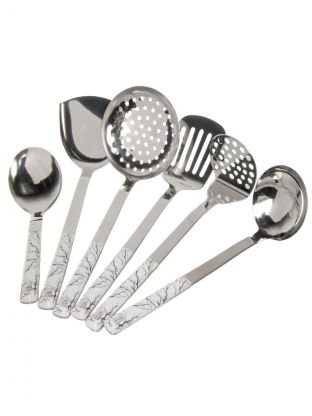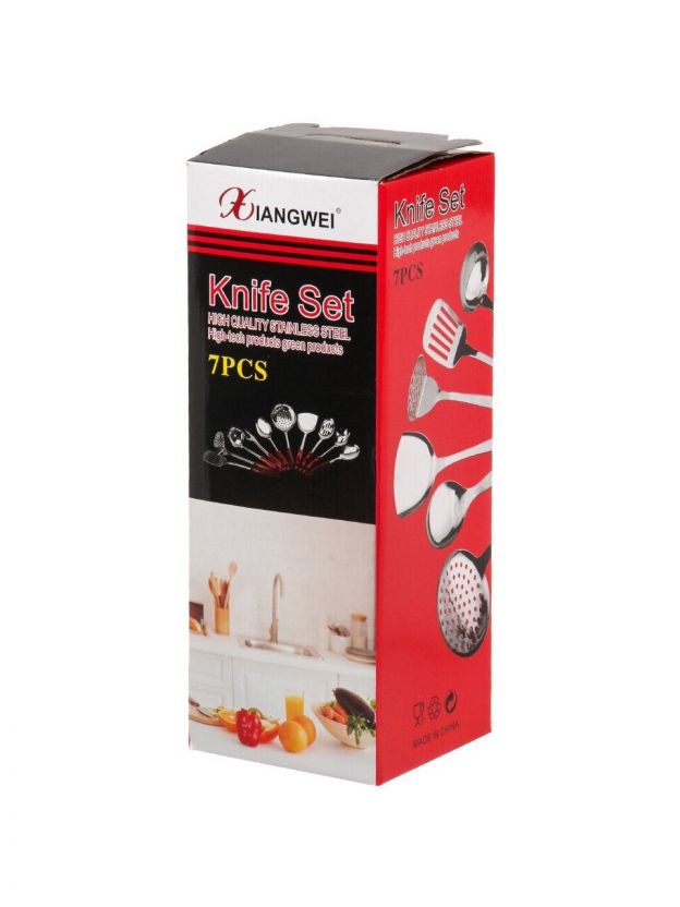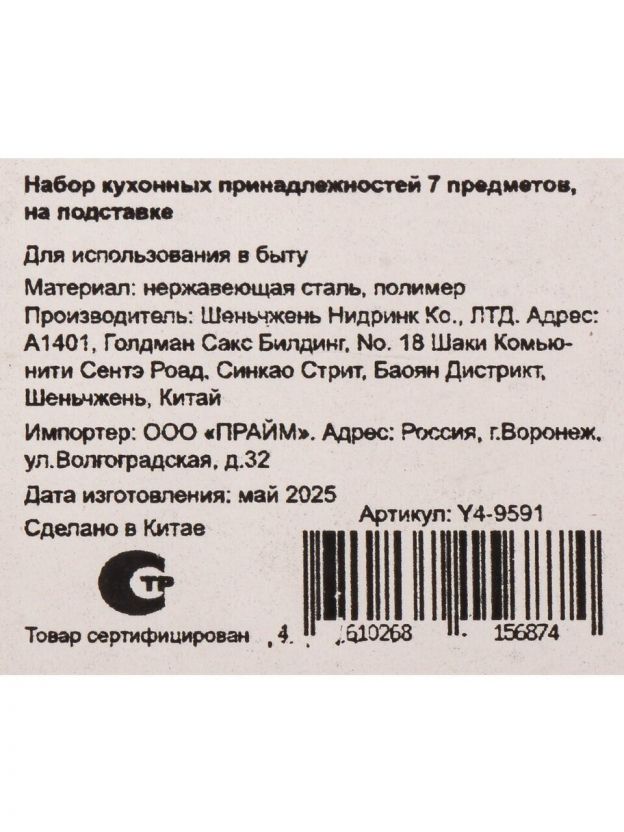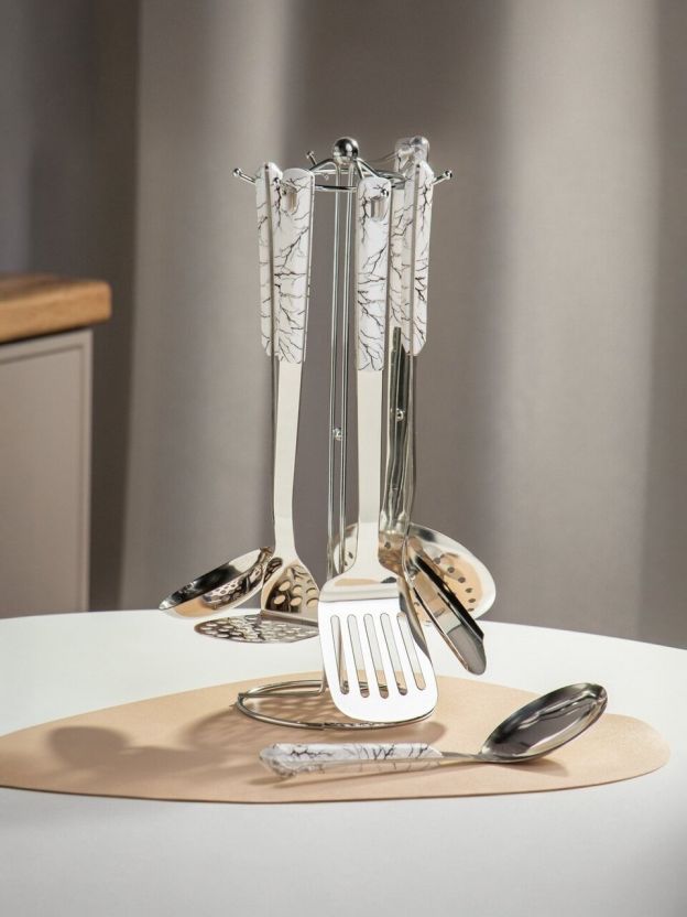 Набор кухонных принадлежностей 7 предметов, сталь, на подставке, навеска, белый, Daniks, Y4-95, ручка пластик