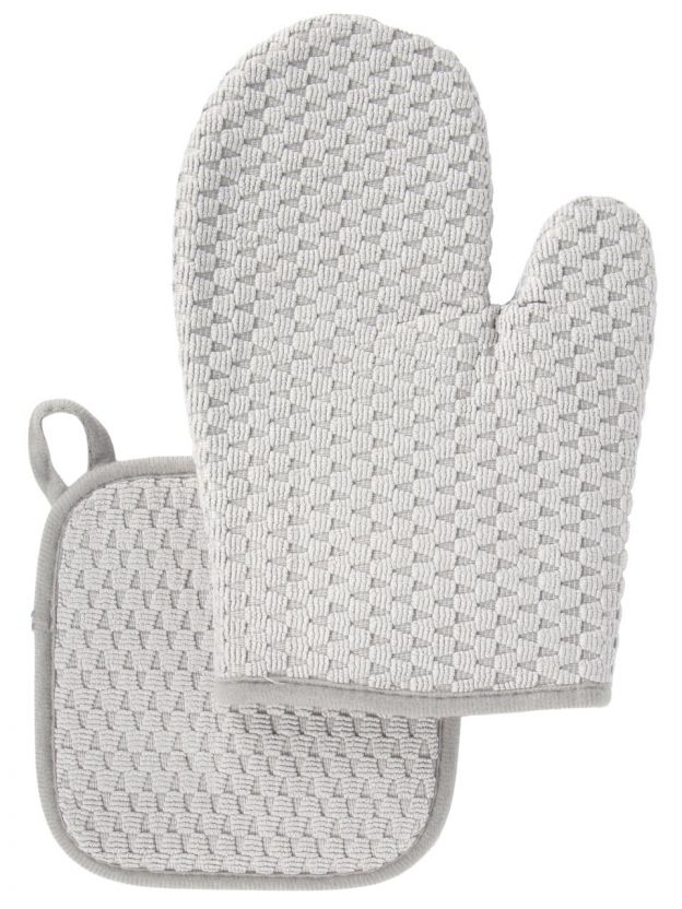 Набор кухонный 2 шт, 28х17 см + 17х17 см (варежка,прихватка), полиэстер, серый, B180061