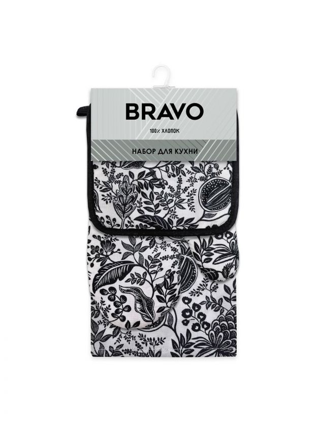 Набор кухонный 3 шт, 17х17 см + 18х26 см + 35х60 см (варежка, прихватка, полотенце), 100% хлопок, Bravo, Гранаты