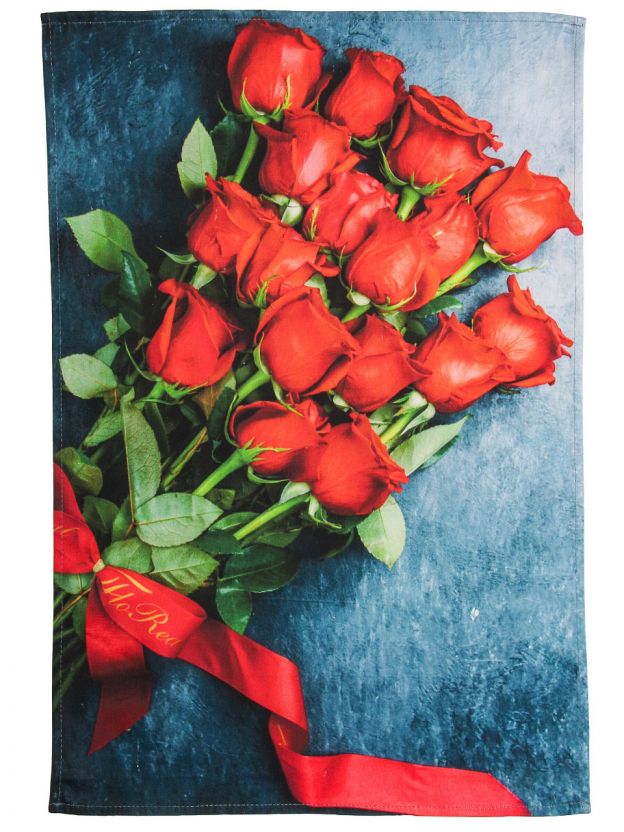 Цвет — красный с принтом «букет роз». Состав — 100% хлопок, что обеспечивает долговечность и комфорт в использовании.