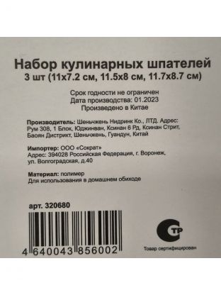 Набор кулинарных шпателей 11х7.2, 11.5х8, 11.7х8.7 см, навеска, 3 шт, в ассортименте, Y3-1235/320680