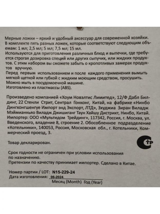 Мерные ложки – яркий и удобный аксессуар для современной хозяйки. В комплекте пять разных ложек, которые соответствуют следующим объемам: 1 мл; 2,5 мл; 5 мл; 7,5 мл; 15 мл.