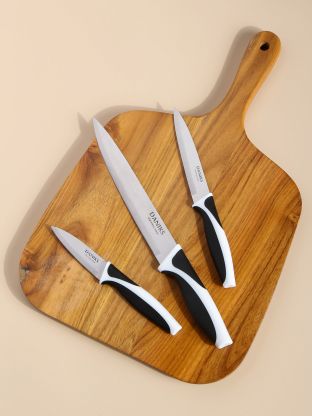 • Универсальный набор: три ножа для всех задач — от овощей до разделки мяса.