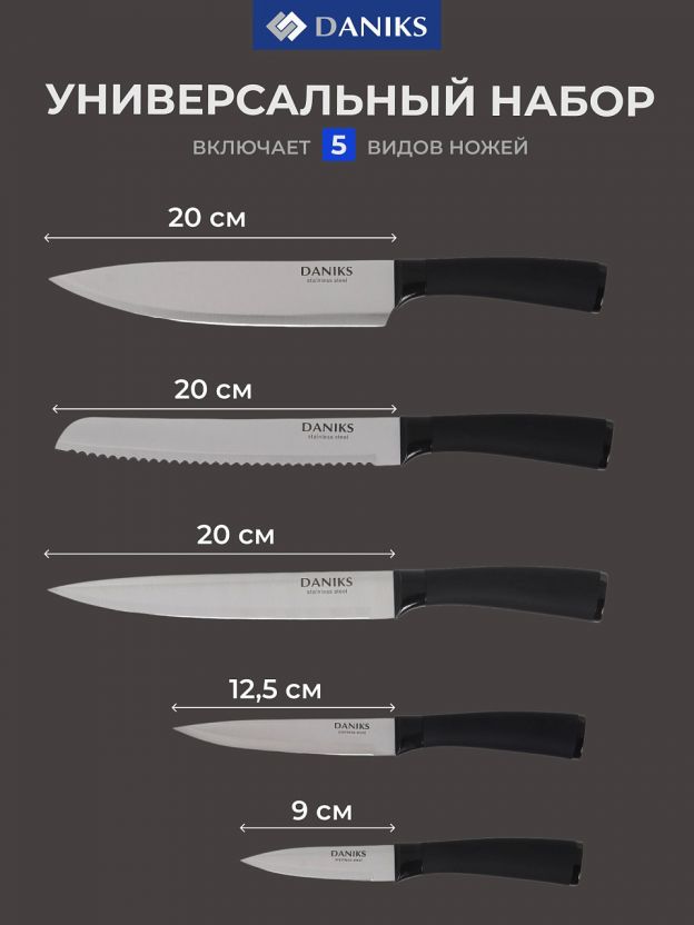 Комплект легко моется в посудомоечной машине, что экономит время и силы при уходе за кухонными принадлежностями. Практичное решение для дома и дачи, а также отличный вариант для подарка. Выбирая набор ножей Daniks Darvin, покупатель получает надежные инструменты, которые прослужат долгие годы и сделают процесс приготовления еды максимально комфортным.