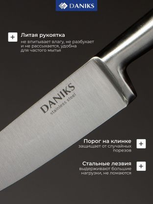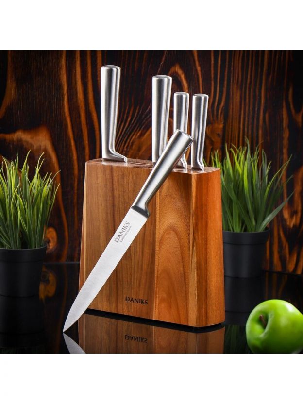 Покупая набор ножей Daniks Lovina, клиент получает не просто функциональный аксессуар для кухни, а инструмент, который ускорит и упростит приготовление любимых блюд, добавит уюта и стиля в дом, а также подчеркнет заботу о качестве и безопасности. Такой набор станет отличным решением для тех, кто ценит удобство, эстетику и долговечность кухонных принадлежностей. Откройте новые возможности для кулинарного творчества вместе с Daniks Lovina!