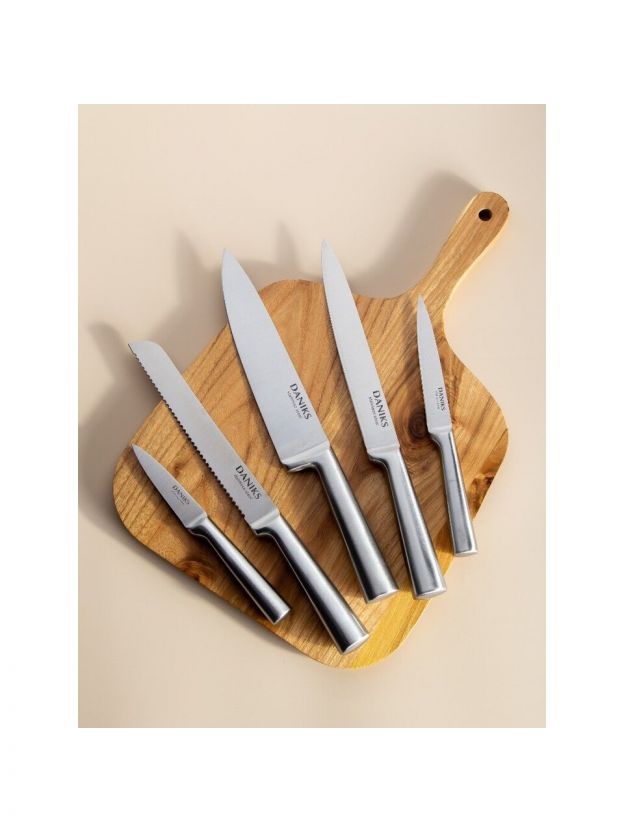 Набор ножей Daniks Lovina — это сочетание функциональности, эстетики и надежности. Каждый нож идеально сбалансирован, что облегчает нарезку продуктов любой твердости. Серебристый цвет подчеркивает премиальный стиль, а возможность мытья в посудомоечной машине экономит время и силы. Благодаря различной длине лезвий (от 9 до 20 см) легко подобрать инструмент для любых задач: от филигранной нарезки овощей до аккуратного нарезания хлеба и разделки мяса. Кухонные ножи Lovina — выбор, который оценят как начинающие кулинары, так и опытные повара.