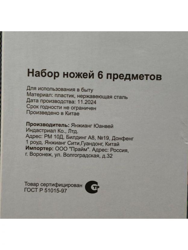 Все элементы набора, включая рукоятки и подставку, изготовлены из нержавеющей стали, что обеспечивает долгий срок службы и легкость ухода.