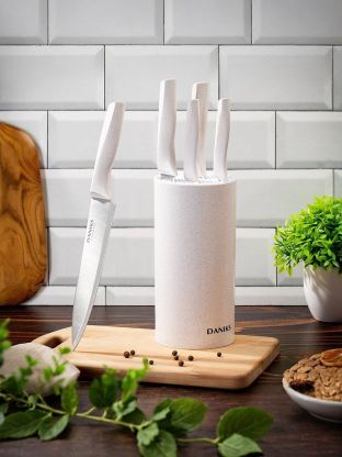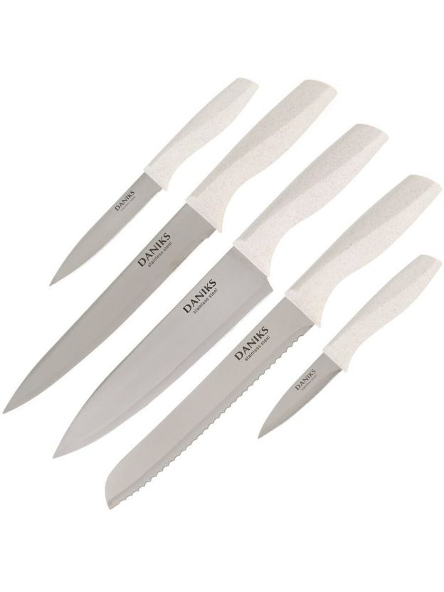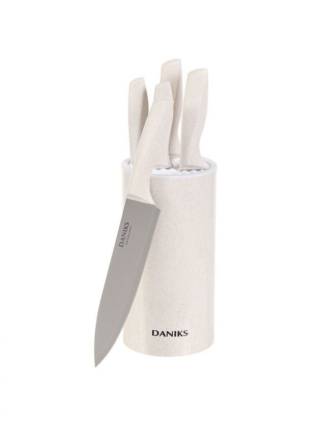 Набор ножей 6 предметов, нержавеющая сталь, рукоятка пластик, с подставкой, пластик, Daniks, Латте, YW-A383