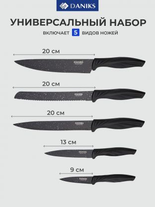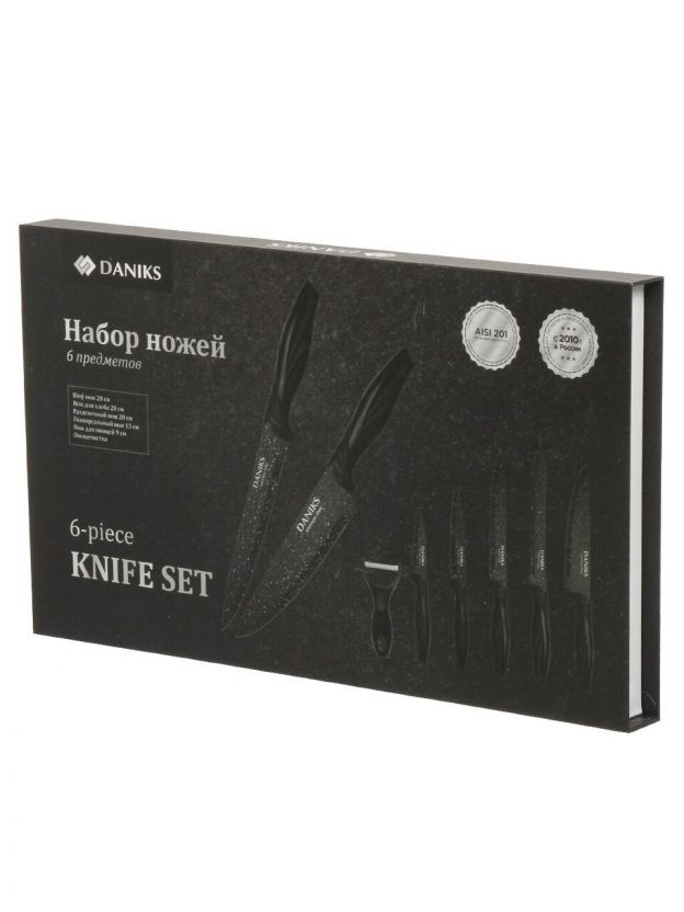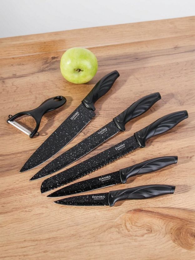 Набор ножей 6 предметов, подарочная упаковка, черный, нержавеющая сталь, рукоятка пластик, Daniks, YW-A349-PB