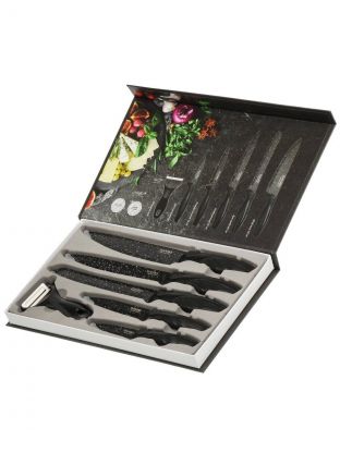 В комплекте собраны самые востребованные кухонные инструменты: шеф-нож, нож для овощей, универсальный нож, хлебный нож, разделочный нож и овощечистка. Лезвия из нержавеющей стали отличаются прочностью и устойчивостью к коррозии, а пластиковые рукоятки удобно лежат в руке и обеспечивают надежный хват. Благодаря оптимальному размеру ножей (от 9 до 20 см длина лезвия), легко справляться с любыми задачами: нарезка, шинковка, чистка и разделка продуктов.