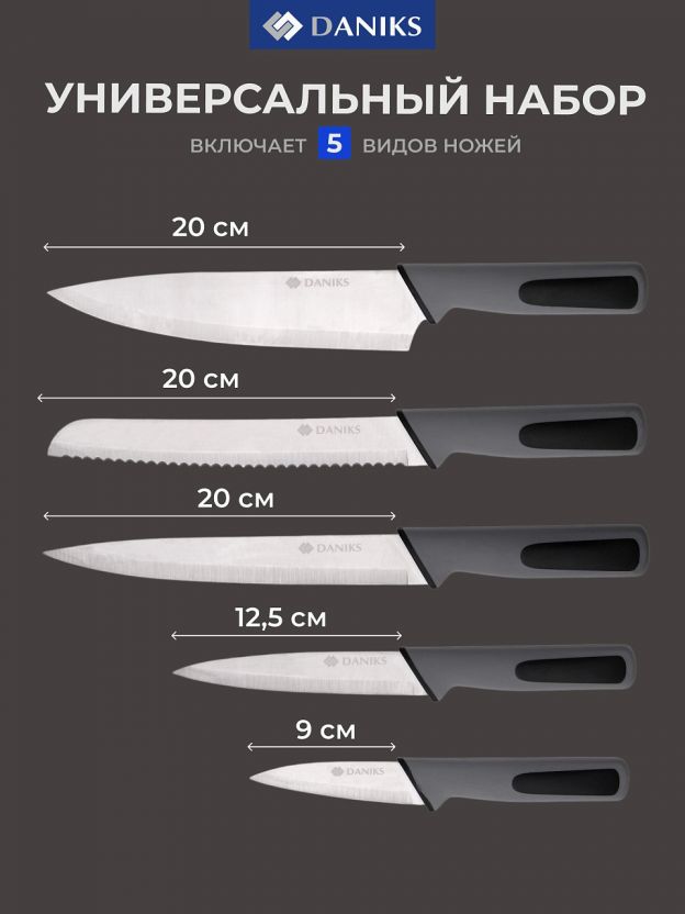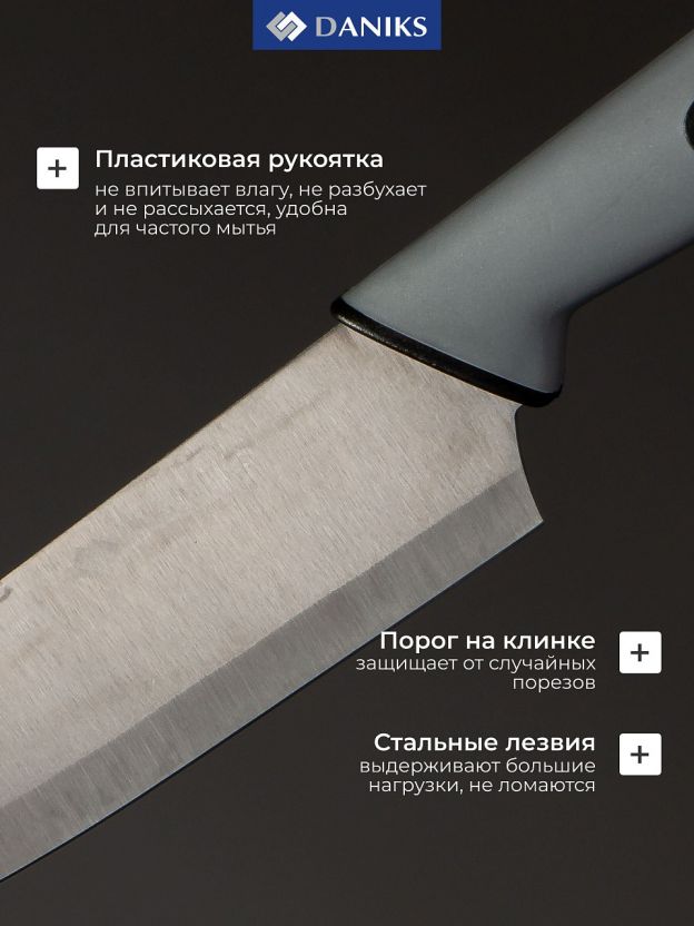Покупка набора ножей Daniks Aura — это инвестиция в удобство и порядок на кухне. Прочный материал лезвий гарантирует идеальный результат нарезки, а продуманная комплектация избавляет от необходимости приобретать дополнительные инструменты. Экономия времени на приготовление блюд, легкость ухода и стильный внешний вид — выгода, которую оценит каждый, кто ценит комфорт и функциональность в доме. Daniks Aura станет надежным помощником и украсит любую кухню.